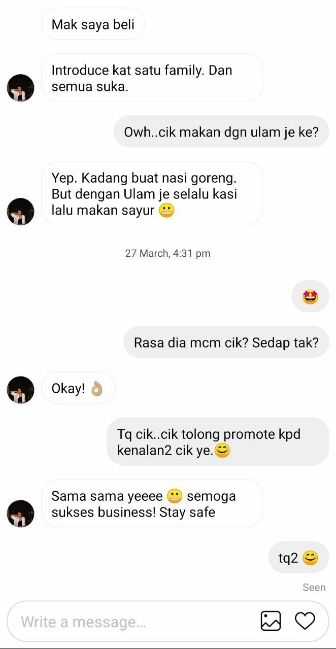 “Saya & family memang dah biasa dengan sambal belacan dirumah..#SambalBelacanDapurIbu ni bagi saya memang sedap, memukau…rasanye yang sedap & secukup rasa sama seperti mak saya buat dirumah”.