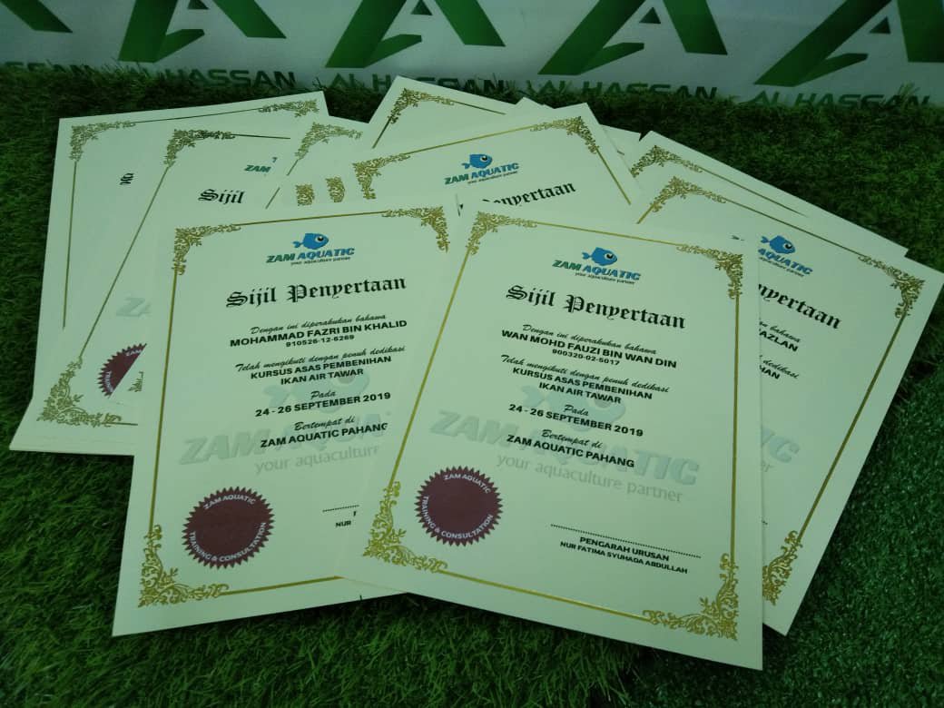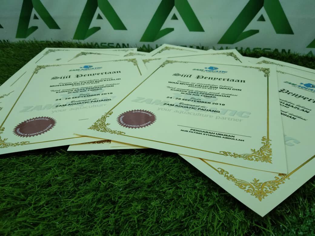 Permintaan dari pelanggan kami, mereka buat tempahan sijil. Sijil siap cetak logo, detail maklumat penerima sijil.