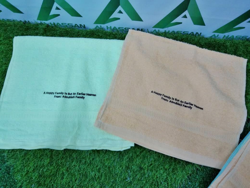 Tuala sekali dengan kotak dan tuala boleh cetak juga ya. Nak cetak ucapan terima kasih ke, ucapan penghargaan ke atau apa saja yang dirasakan sesuai.❤