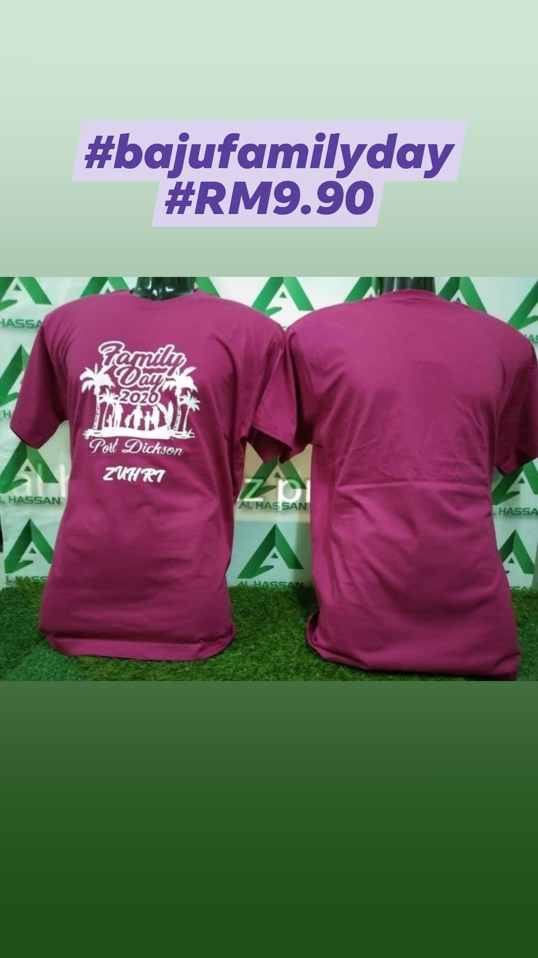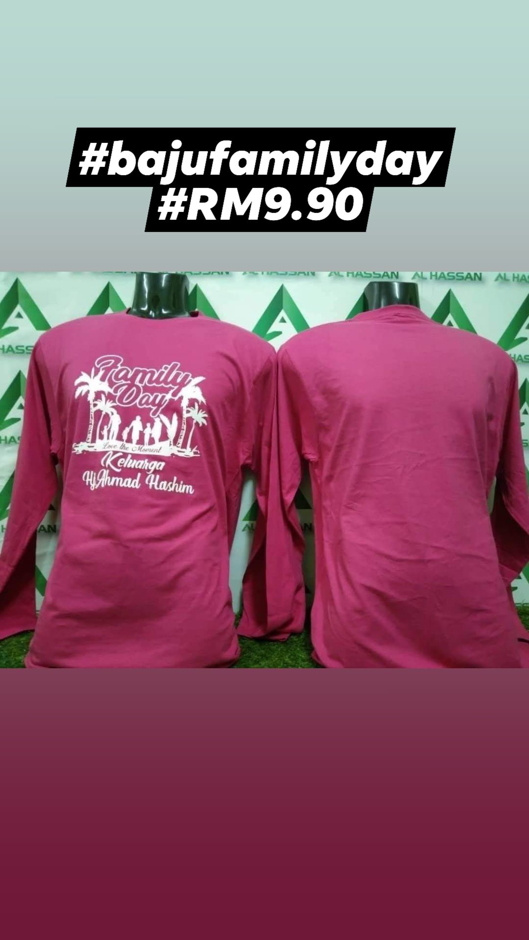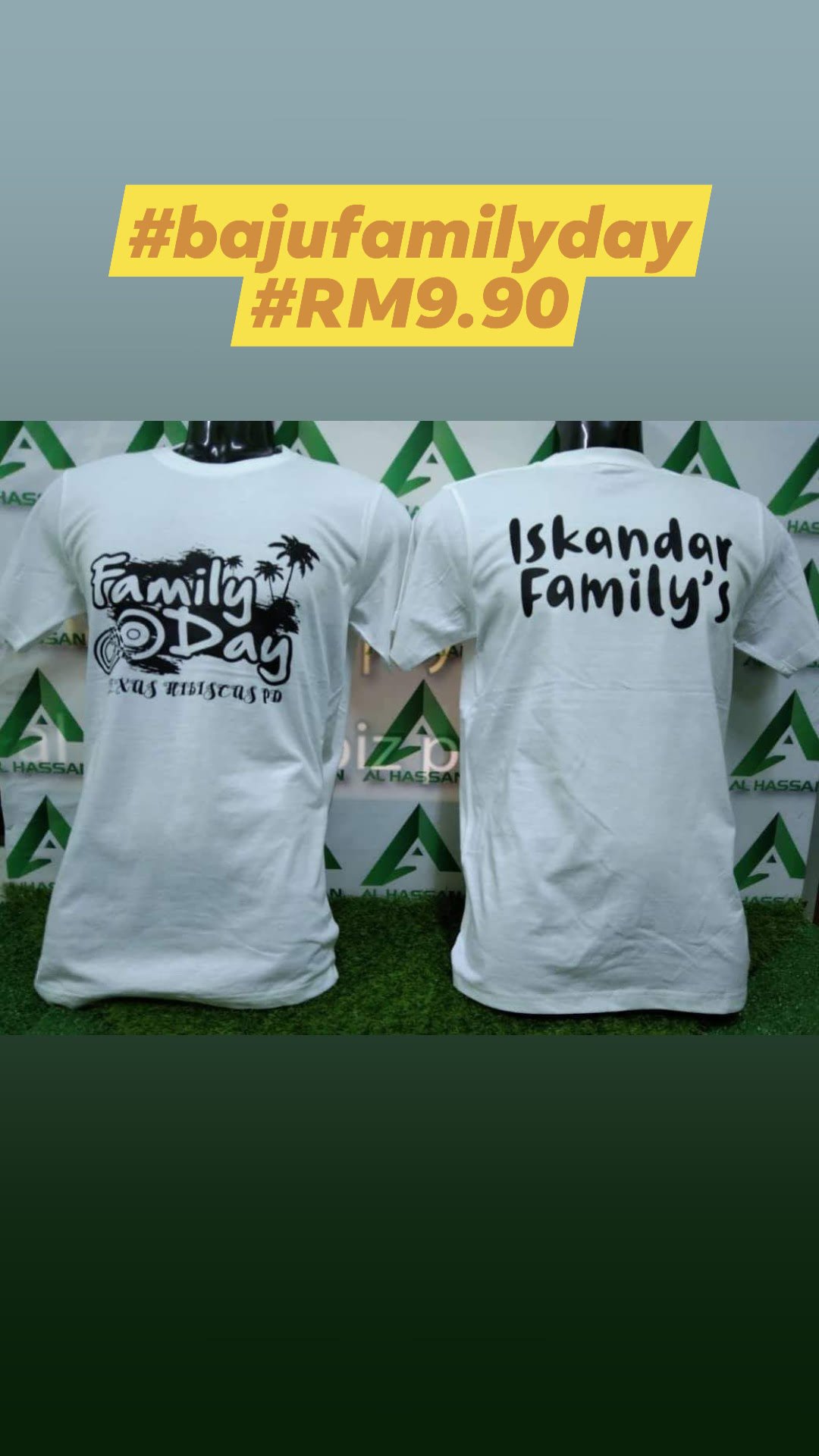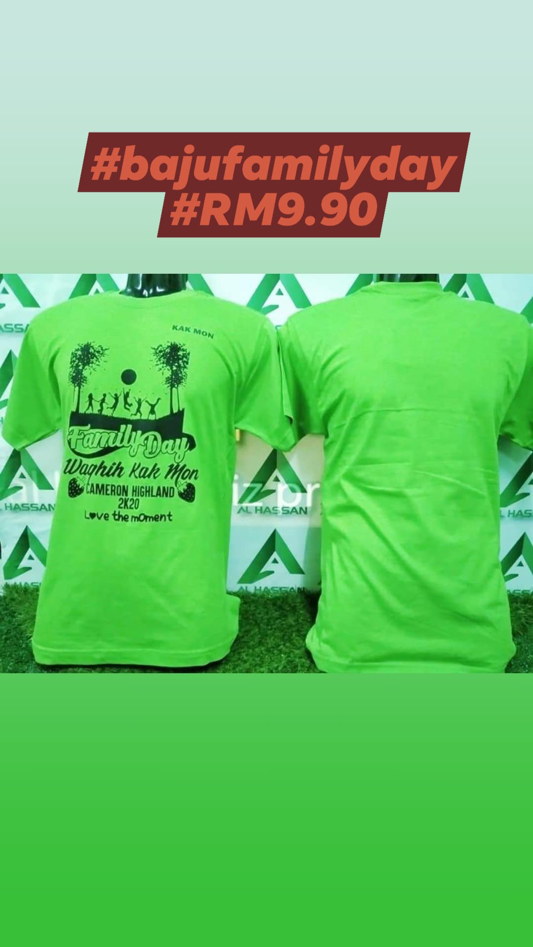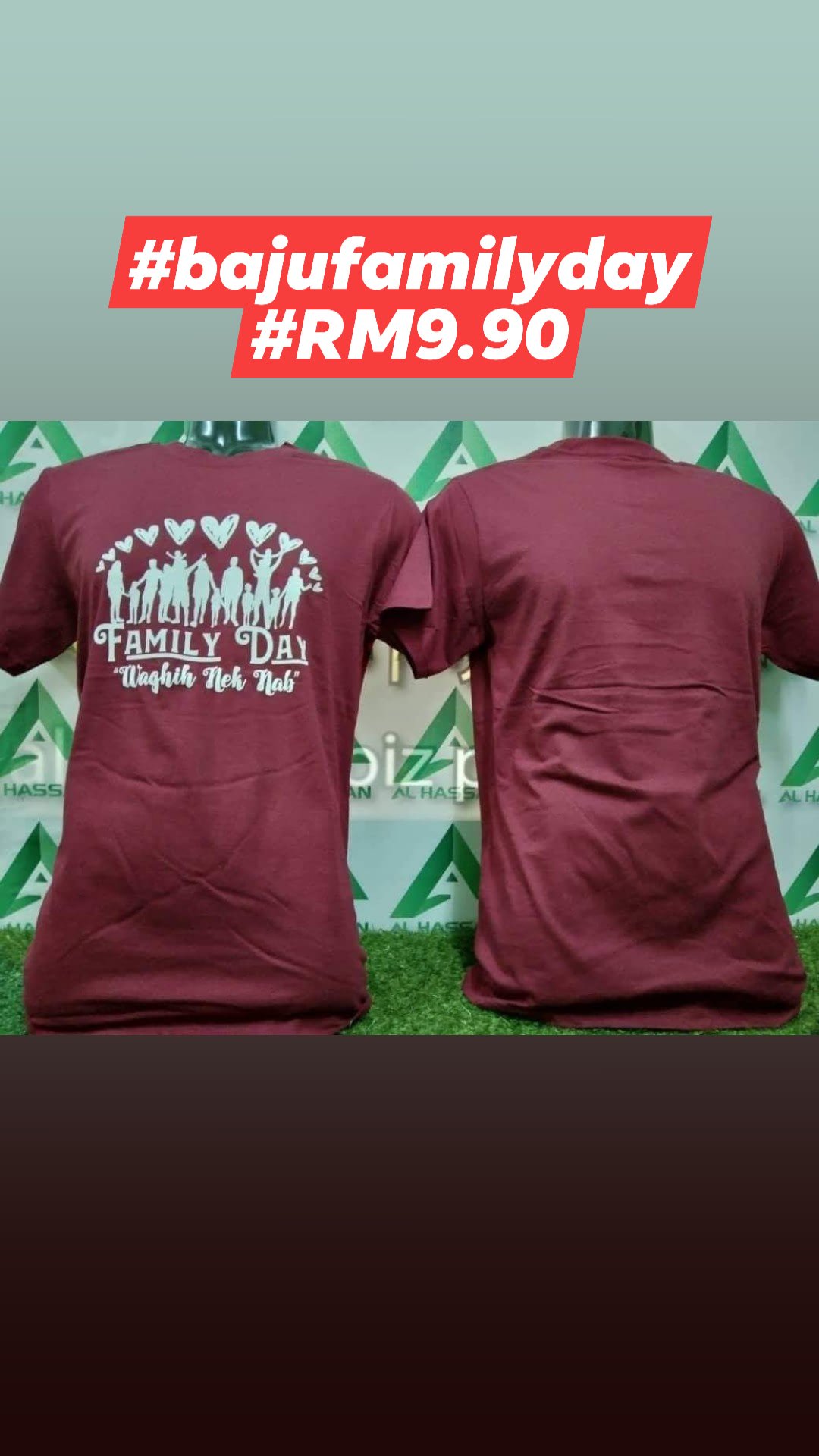 Kami nak offer baju family day termasuk cetak pada harga RM9.90 sehelai. Grab harga kaw-kaw murah ni sekarang! kalau tempah tahun depan. Harga mungkin dah tak sama!