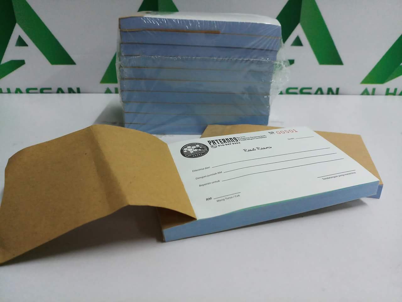 boleh buat 2 atau 3 layer . Tak perlu lagi guna kertas karbon. Boleh juga customize kolum dan perkataan & yang paling best nak letak logo company sendiri pun boleh..