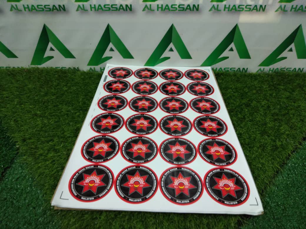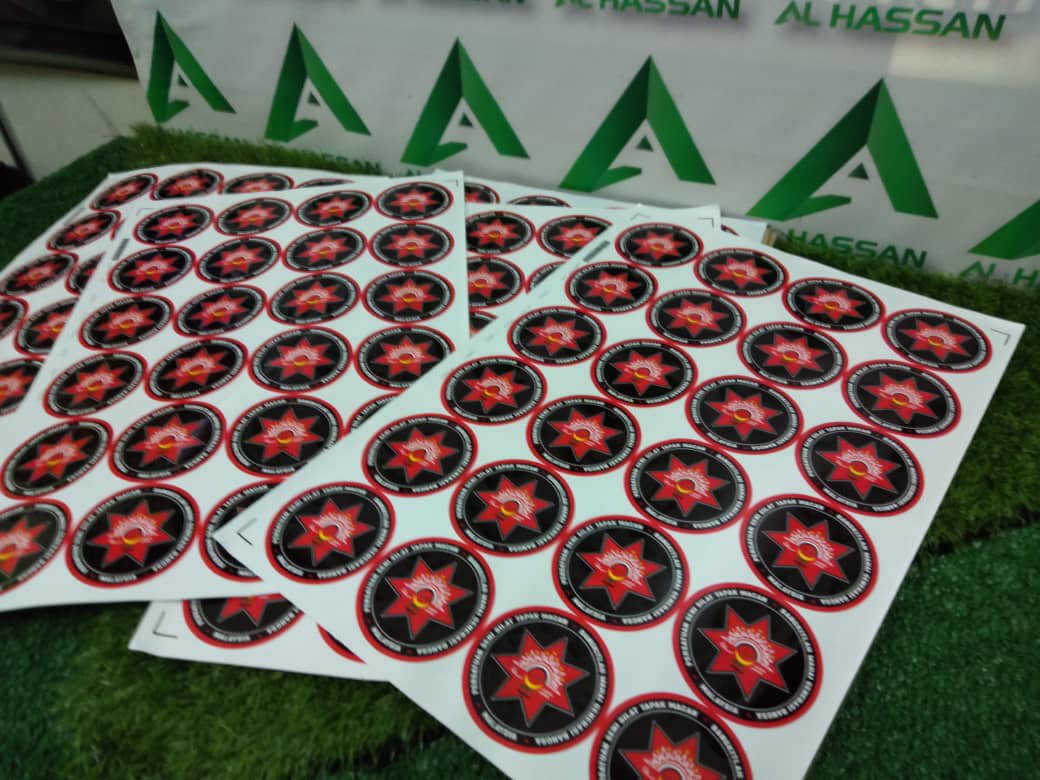 Sticker yang kami gunakan jenis kalis air, tahan lasak dan berkilat.