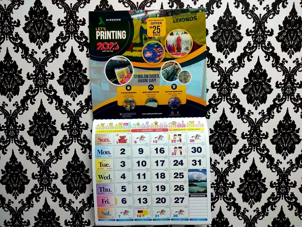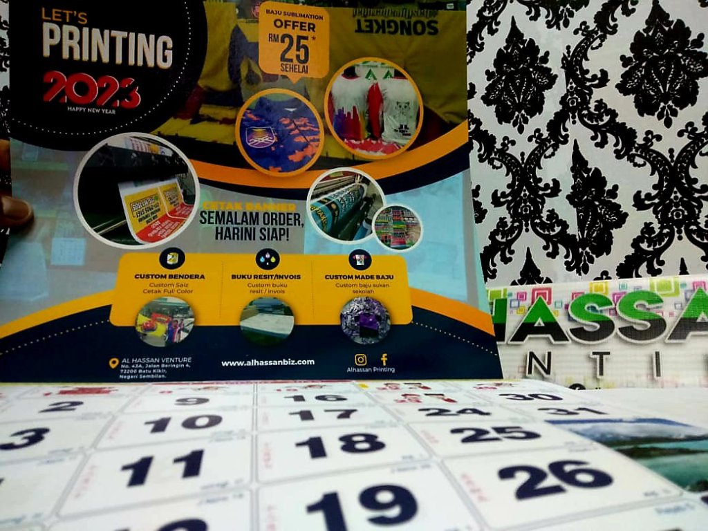 Cetakan ‘full colour’, maknanya tak kisah berapa banyak warna logo sekolah cikgu. Begitu juga warna latar belakang bendera, tiada limit warna.
